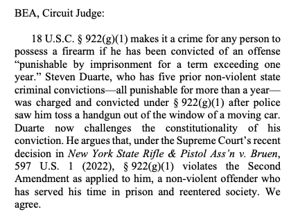All-Republican [9th Circuit] panel invalidates federal felon firearms ban as applied to the nonviolent offender