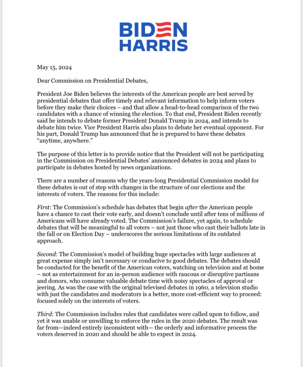 (711 posts)When I debated in high school, we were taught how to never interrupt our opponent when he/she had the floor and to instead focus on his/her arguments to help make your own case. Trump doesnt know how to debate. That is a problem because he has nothing to argue to support his allegations. All he knows is how to lie and filibuster. Trump will decline Joes offer because he knows that he would lose if he had to follow the rules, unlike anyone else, who believes in, and can actually support, their positions.