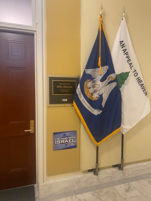(8,524 posts)An Appeal to Heaven flag outside #NAR Mikes speakers office.