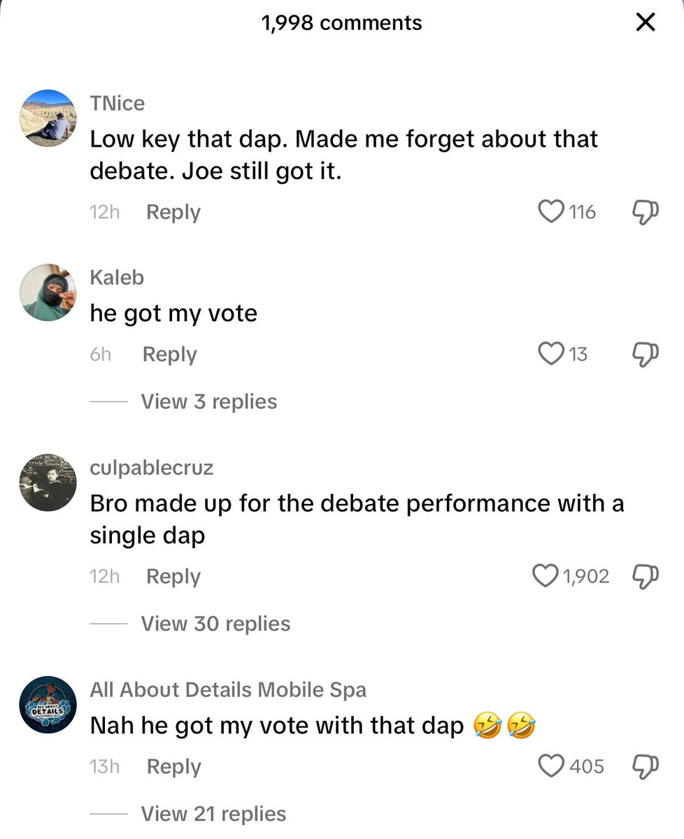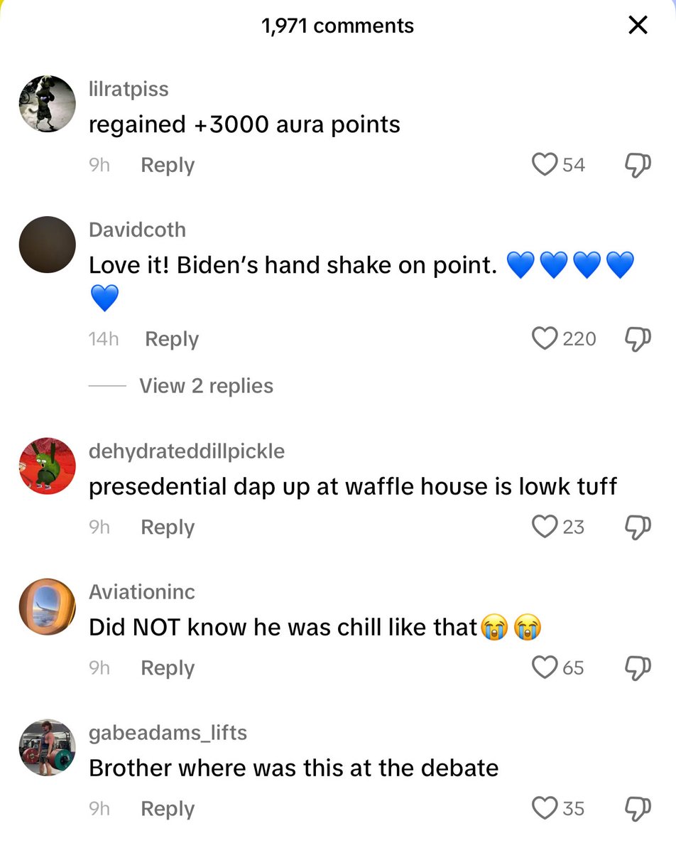 this organic video of Biden at Waffle House post-debate is going viral on multiple social platforms