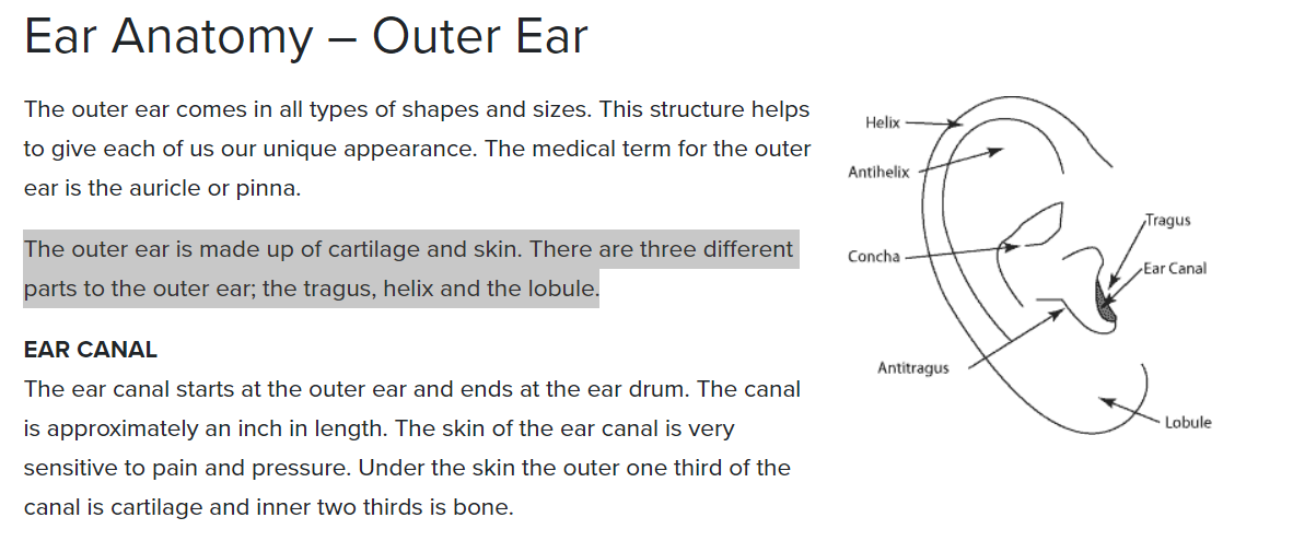 Now, a couple of millimetres lower. The earlobe is only a few millimetres deep before you reach the white cartilage. The mechanical force bulldozes the flesh out of the way above the cartilage. Again the energy is not transferred deep into the flesh.
