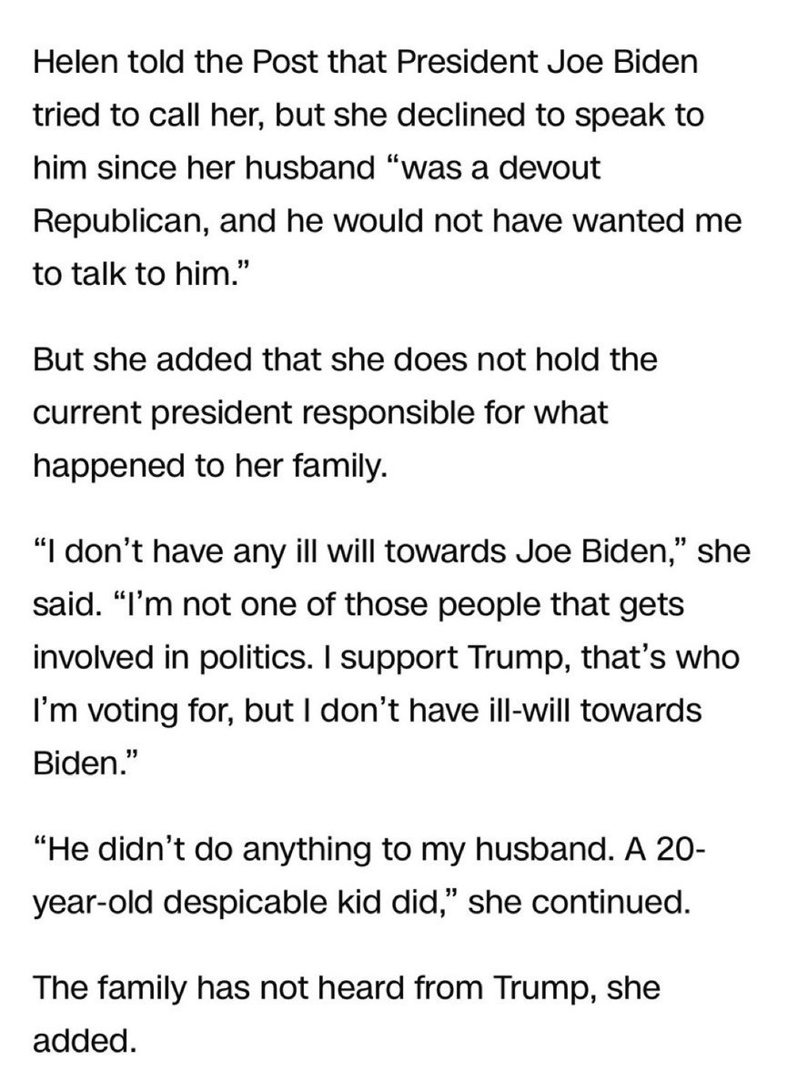 (5,851 posts)"I don't have any ill-will towards Joe Biden. He didn't do anything to my husband. A 20-year-old despicable kid did."