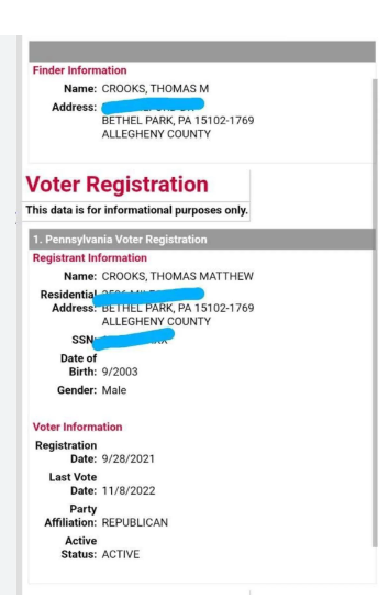 (10,997 posts)His dad was supposedly a liberation so he could have grown up with a dislike for the 2 major parties. He was searching for where Trump & Biden would both be - so he might have tried to kill whoever came to town first. Last kid in his class who was interviewed said he never saw him bullied and said he was an arrogant know -it-all & had a group of weird friends.