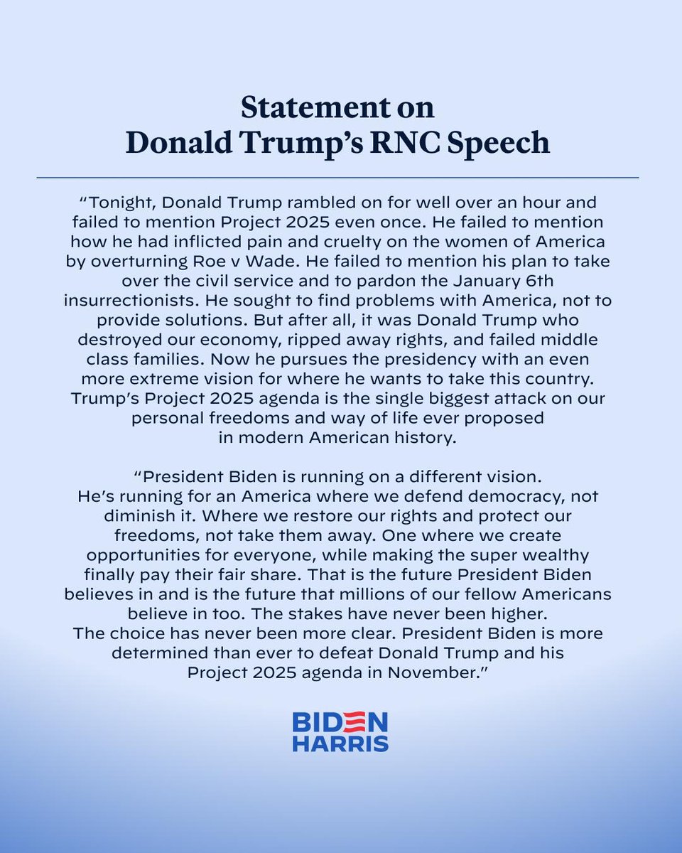 Biden-Harris campaign statement on Donald Trump's rambling RNC speech (Original Post)