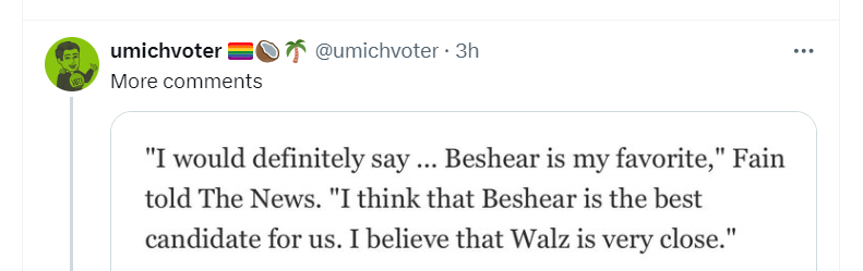 We even have a handful who are implying the same antisemitic motivations to posters who take issue with Mark Kelly (posters who have concerns over Kelly's labour/union issues causing a schism, with one major union head already stating Kelly is a non-starter for VP due to said labour/union issues) simply because Kelly has a Jewish wife and therefore any concerns over Kelly are thus implied to be antisemitic in nature.