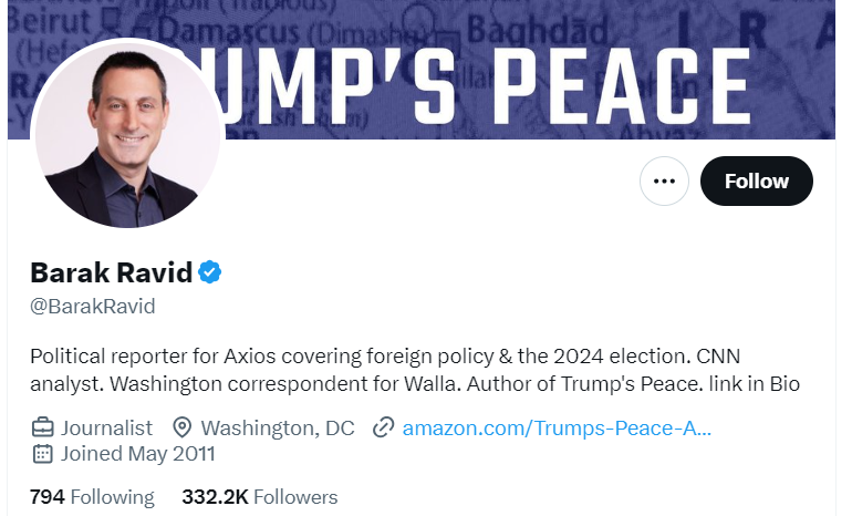 Barak Ravid (@BarakRavid) is a political reporter for Axios, also legit