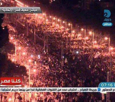 25mil Egyptians fill streets and sq's of #Egypt cities to protest #Morsi decree.This crowd is outside president palace