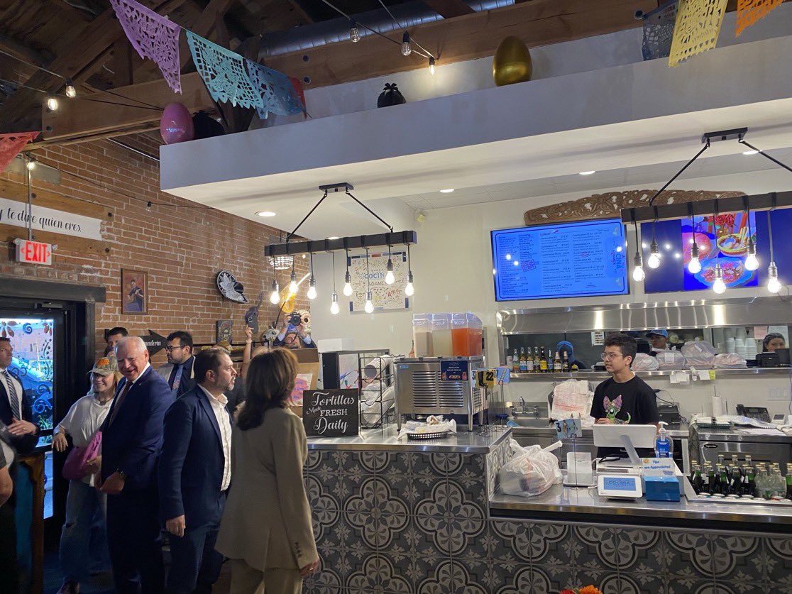 Reda @RedaMor_NOW: Vice President Harris, Tim Walz and Ruben Gallego are making a food stop at a local Mexican restaurant in Glendale, Arizona