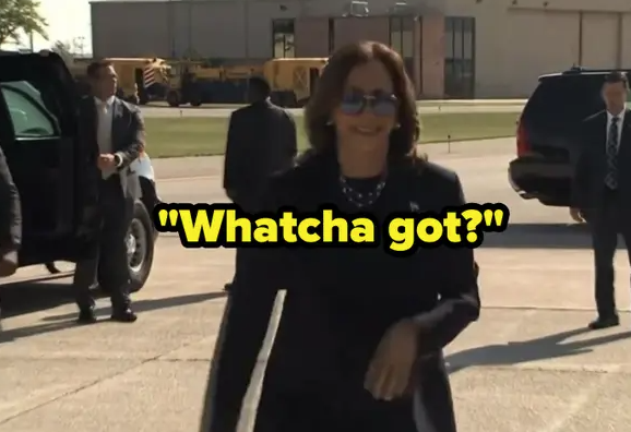 "The moment when Harris walks over to the reporters, whips off her sunglasses, and says, "Whatcha got?" has become a viral meme."