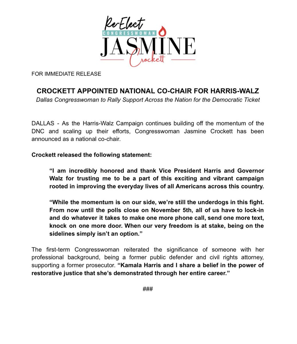 Related: Editorials & Other Articles, Issue Forums, Alliance Forums, Region ForumsCongratulations Jasmine Crockett.