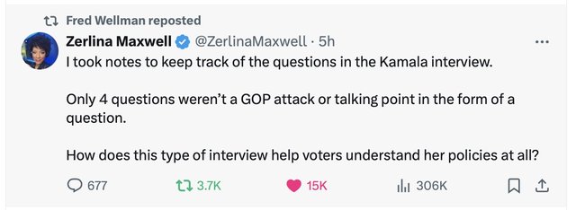 In my view, those undecided voters who saw that interview will be more inclined to vote for VP Harris than before.