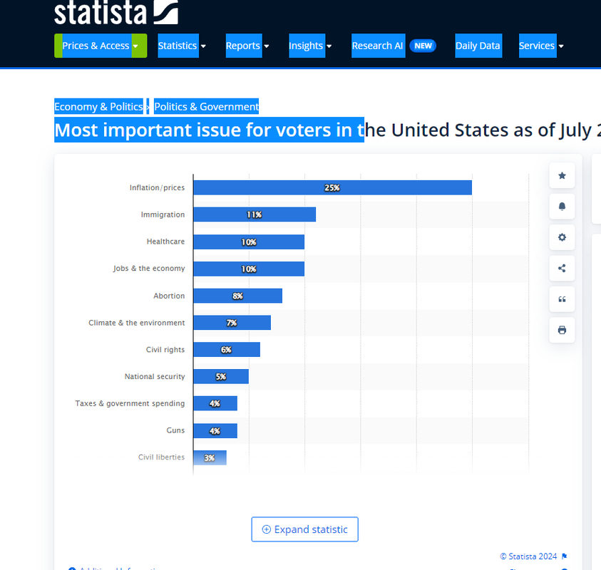 (18,442 posts)Economy is still #1 with approx double the number of people picking it to abortion... 28% - 14%