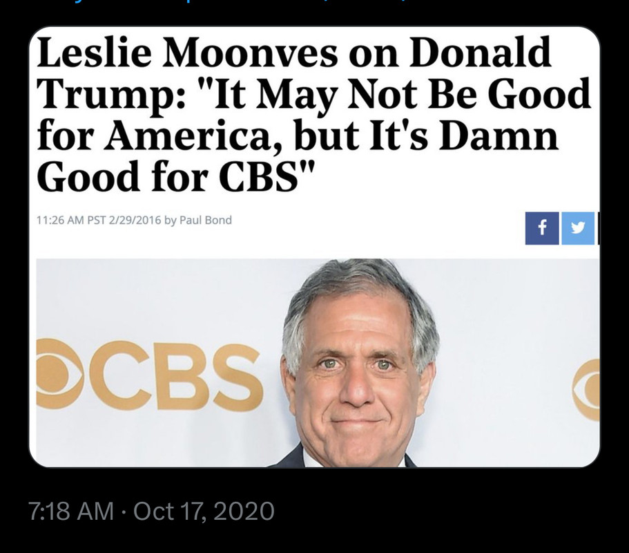 the horse race close, is the key to clicks and cash, but it isn't. If Trump wins, people will turn away from the news (i.e. the majority who are going to vote against him will). If he loses, there is cash to be made. I wish the CEO's