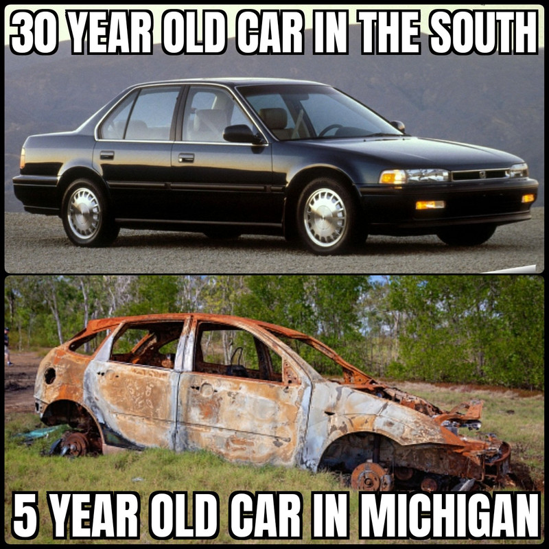 We'd own a car two years before it got "Michigan cancer" (rust along the bottom of the body), and it'd be worthless after four.