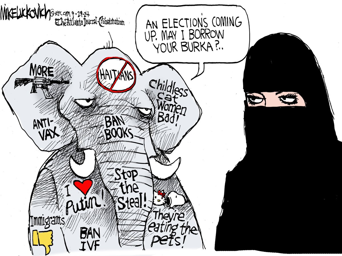 Mike Luckovich- GOP-May I borrow your Burka? (Original Post) LetMyPeopleVote Sep 2024 OP