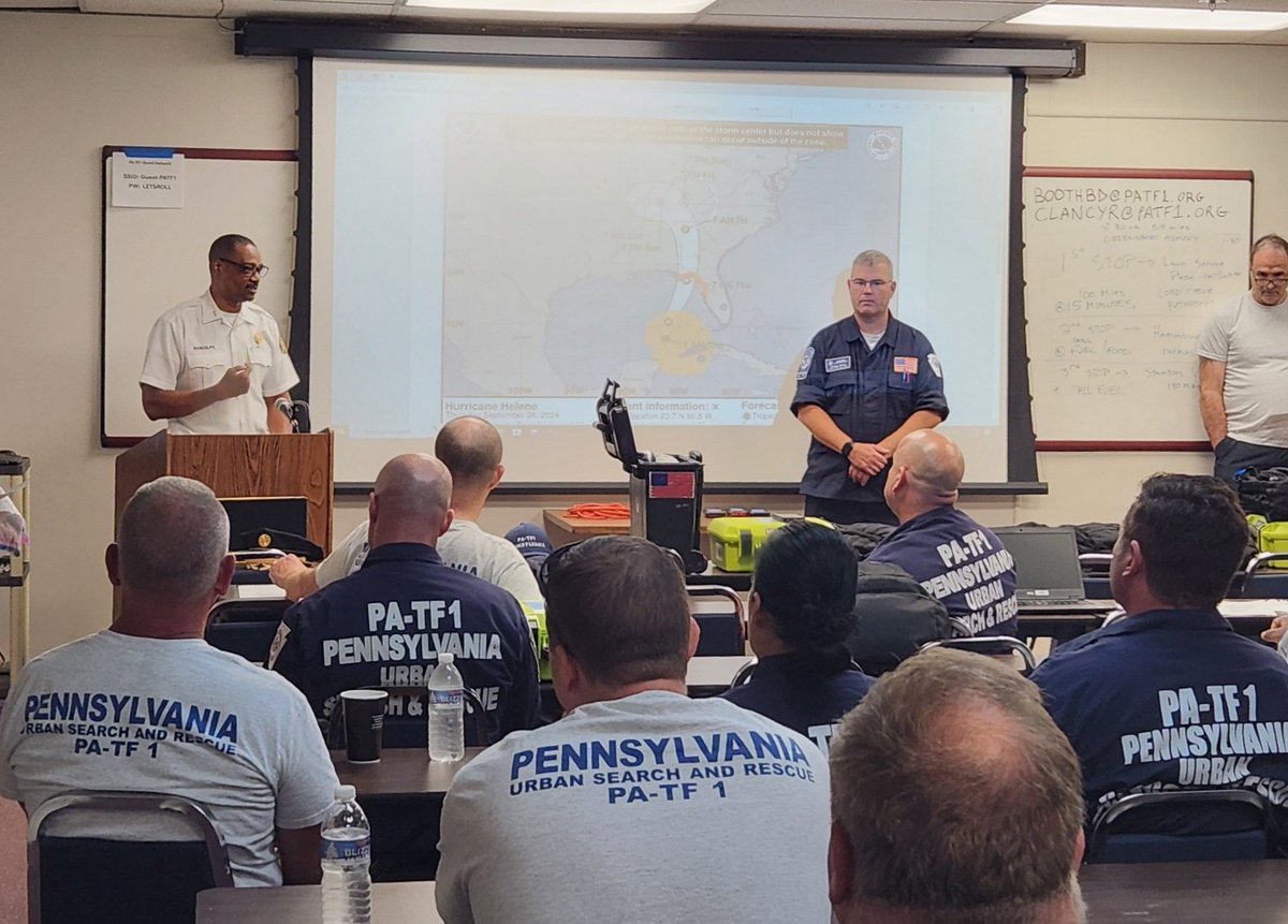 There are 48 @PATaskForce1 members deployed to support the response to Hurricane Helene. Early this morning (9/26), 45 packed up and rolled out. They're headed to Winston -Salem, NC. Two members are in FL, and one is in Washington, DC. #PATF1 @fema @PEMAHQ