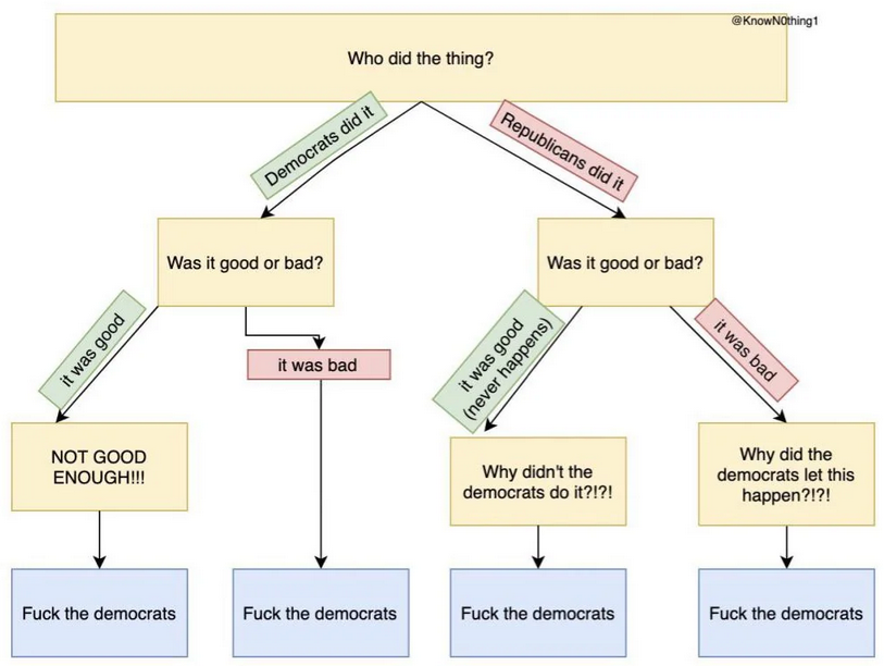 Heres what would make me less depressed: tell us what you (Democratic leadership) are going to do differently going forward than you have been doing in the past, because what you have been doing has gotten us exactly here.