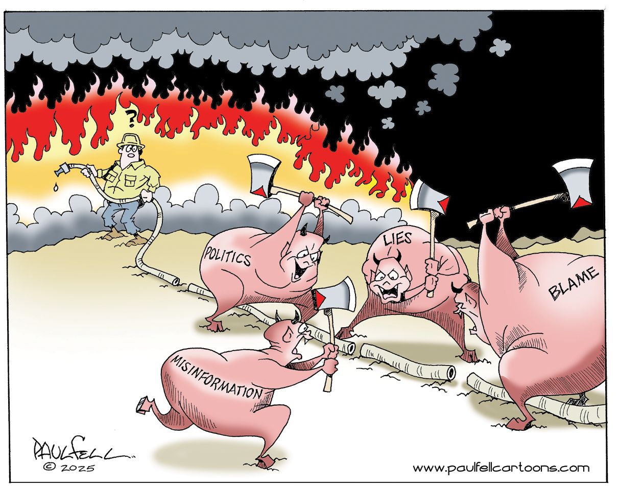 L A wildfires, and of course the emperor has no clothes with his statement.