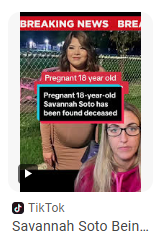 (34,301 posts)I followed this local triple homicide case on Facebook. Savannah was on Tik Tok. All the tweens on FB and Tik Tok were enamoured with her They kept sharing all sorts of fake psychic Tik Tok videos on FB.