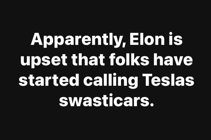Apparently, Elon is upset that people have started calling Teslas swasticars.