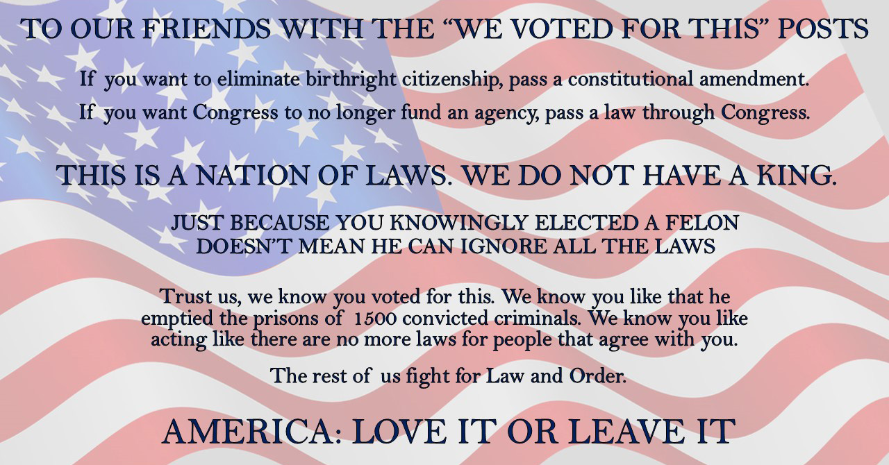 I have right wing people in my social feeds. For reasons, I won't completely block them. I'm getting a bunch of "We Voted For This" posts. I want to find a way to respond, and I believe that images are more potent online these days. I'm starting here on DU. CONSTRUCTIVE feedback is welcome. Here's my first try. Spread it if you like it.