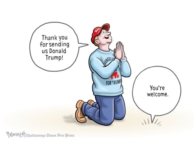 Trump might as well be one of those TV preachers.