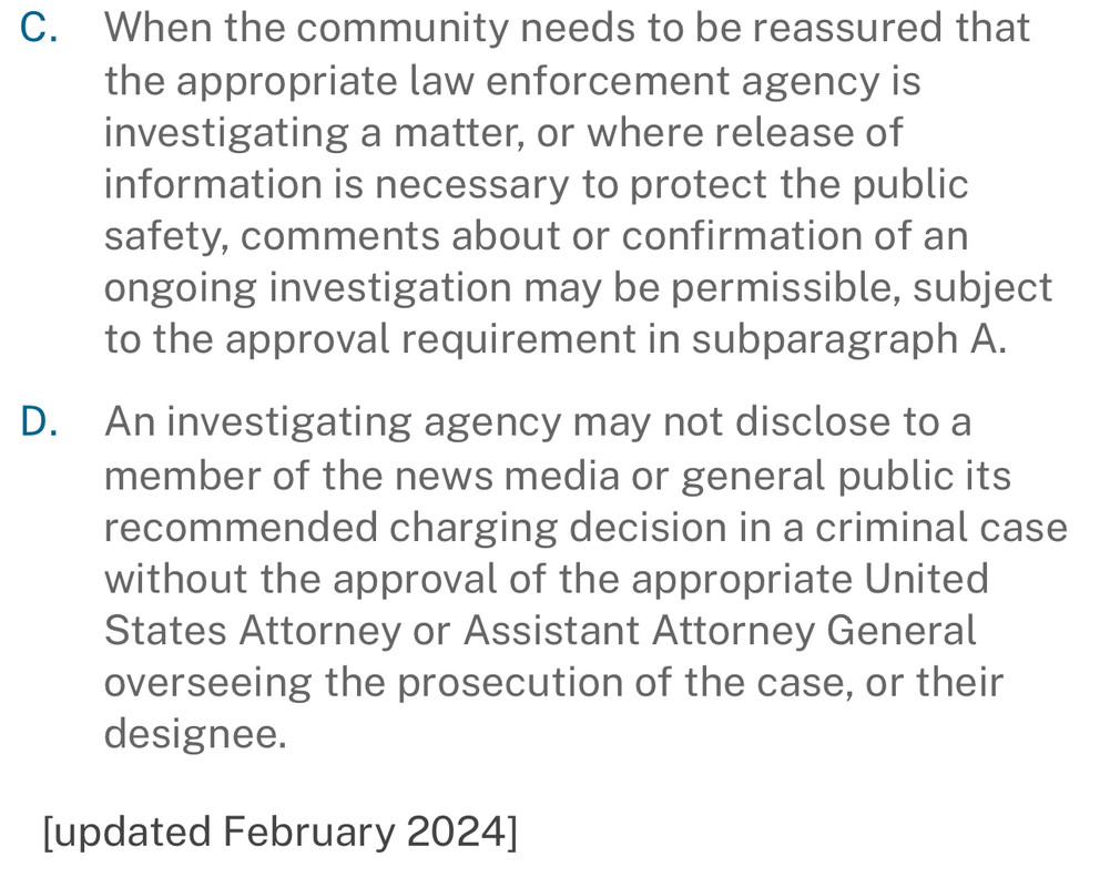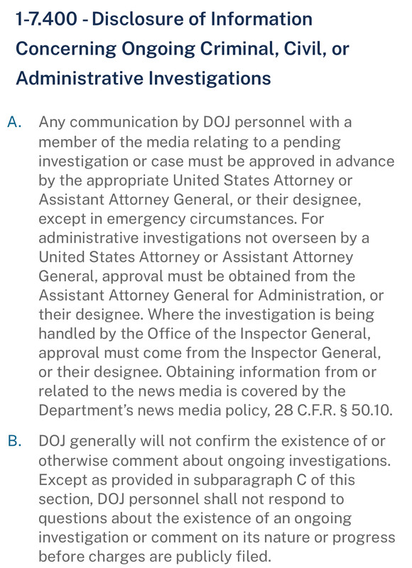 In the olden days of five months ago, the DOJ would announce an indictment when it happened, instead of first announcing their intention to send the FBI on a fishing expedition to find whatever evidence it can dredge up against specific targets.