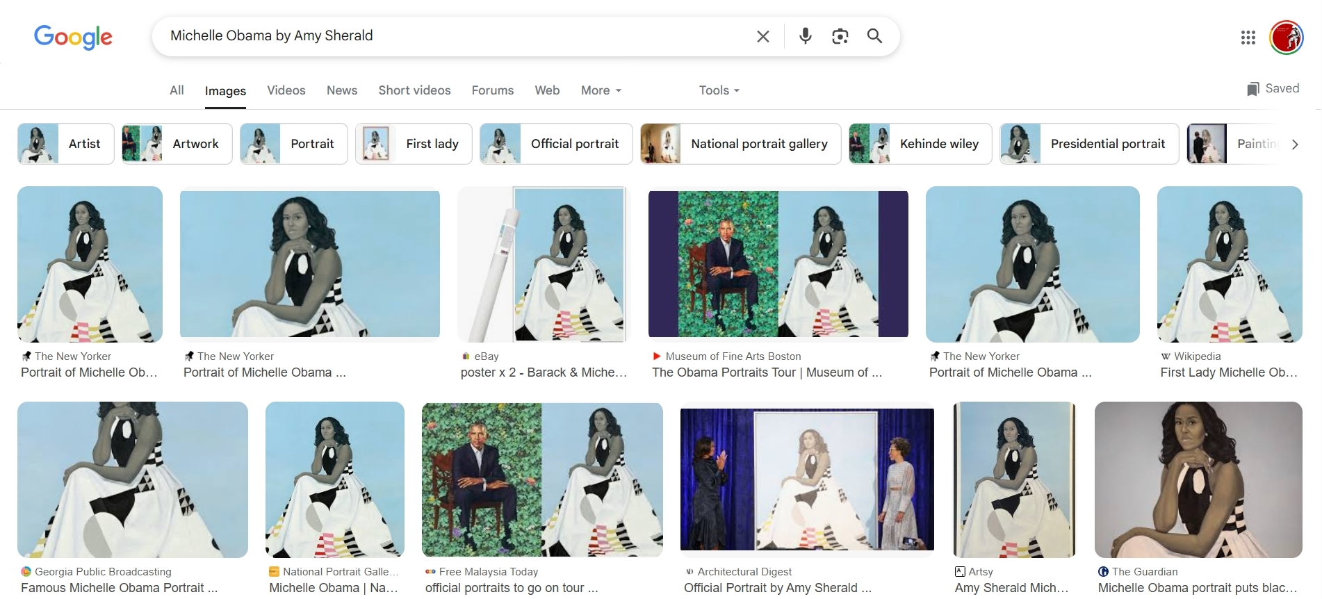 Thanks. I just google "portrait of MIchelle Obama" and get an image and click on it.