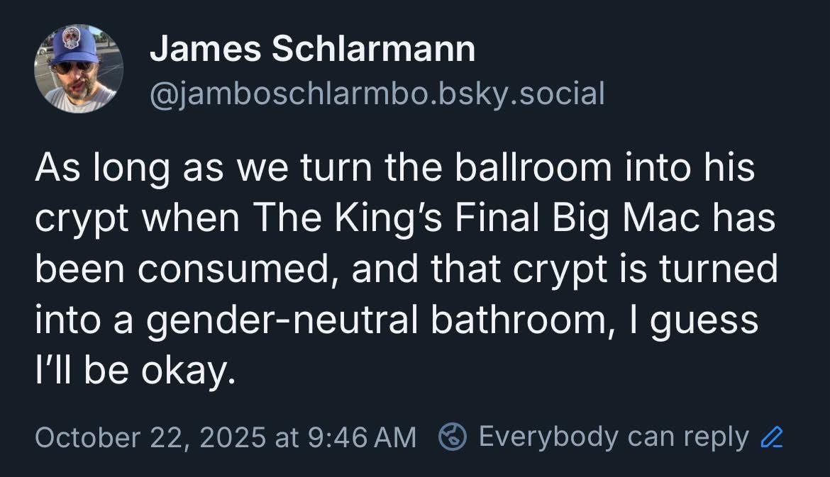 Im starting to suspect there never will be a ballroom , its just another grift , and the destruction was just more to the point cruelty .