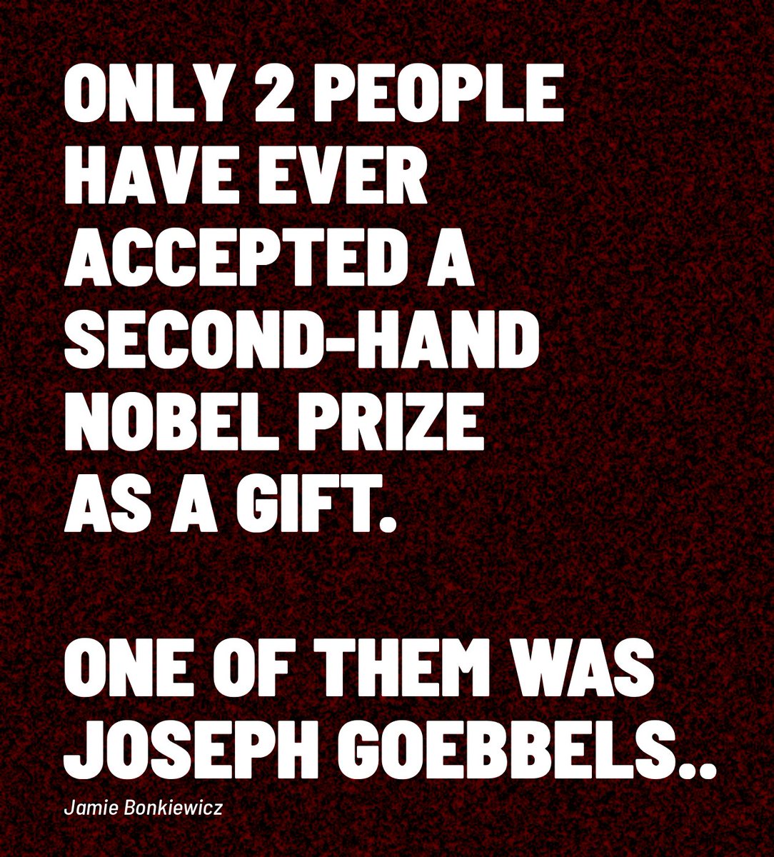 And of course in this case, he didnt win the Nobel Peace Prize, he only received a shiny bauble and a certificate stating someone else won. (Which hell no doubt have reprinted to erroneously state that he was the awardee.)