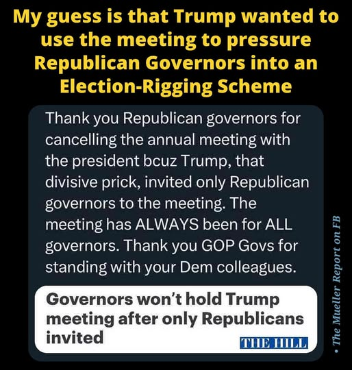 The National Governors Association (NGA) has canceled its annual W H meeting, trump only invited Repug Govs!