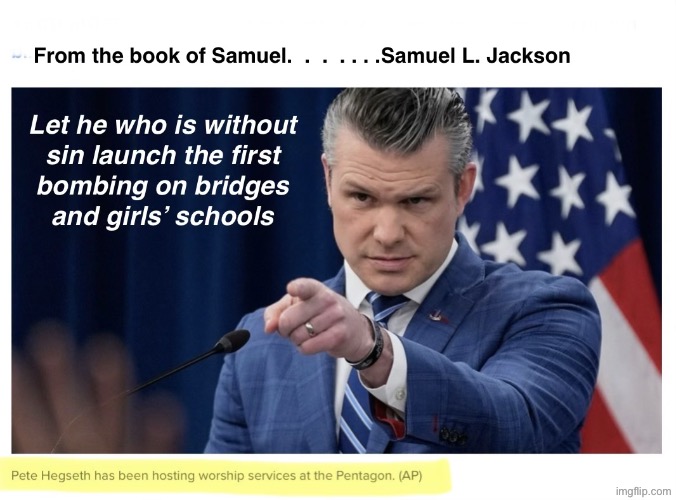 Related: Editorials & Other Articles, Issue Forums, Alliance Forums, Region ForumsPete Hegseth quotes fake Pulp Fiction Bible verse during Pentagon sermon - what a fucking tool.