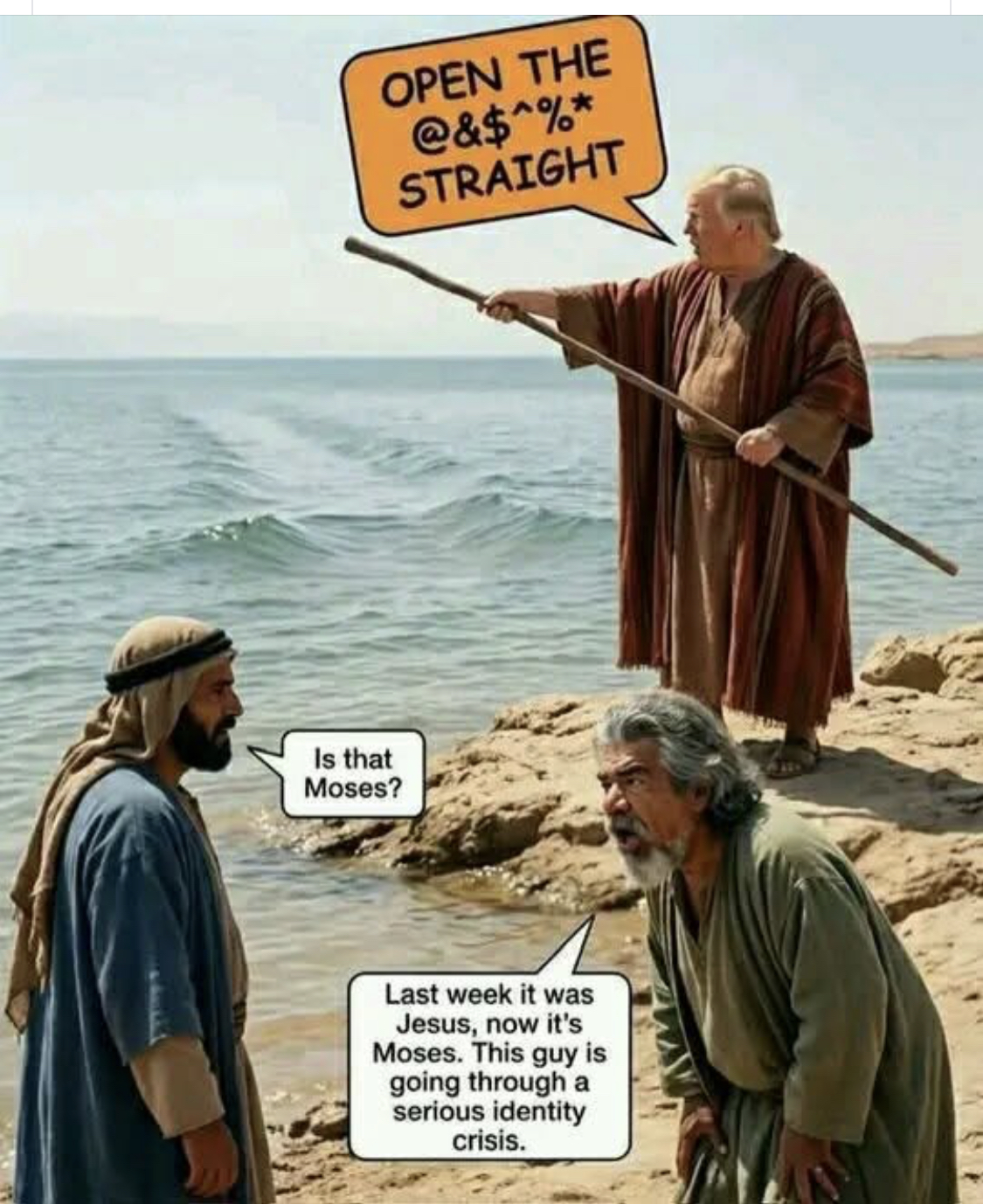 And now he wants to shoot and kill any boat laying mines in the Strait. Even though he claims all Iranian boats are at the bottom of the sea.