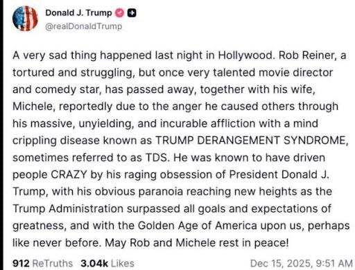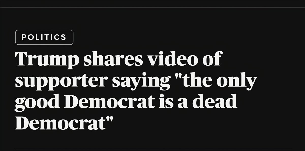 Spare me the poor Trump is a victim of left-wing rhetoric nonsense. No other President before him attacked Americans the way he does on a daily basis! A Judgess house has been blown up, Melissa Hortman & her husband murdered, Violence against immigrants has increased 900% since his last campaign, Judges & Members of Congress get daily threats on their lives and their families lives. Trump is a stochastic terrorist. No one uses more heated rhetoric than he does!