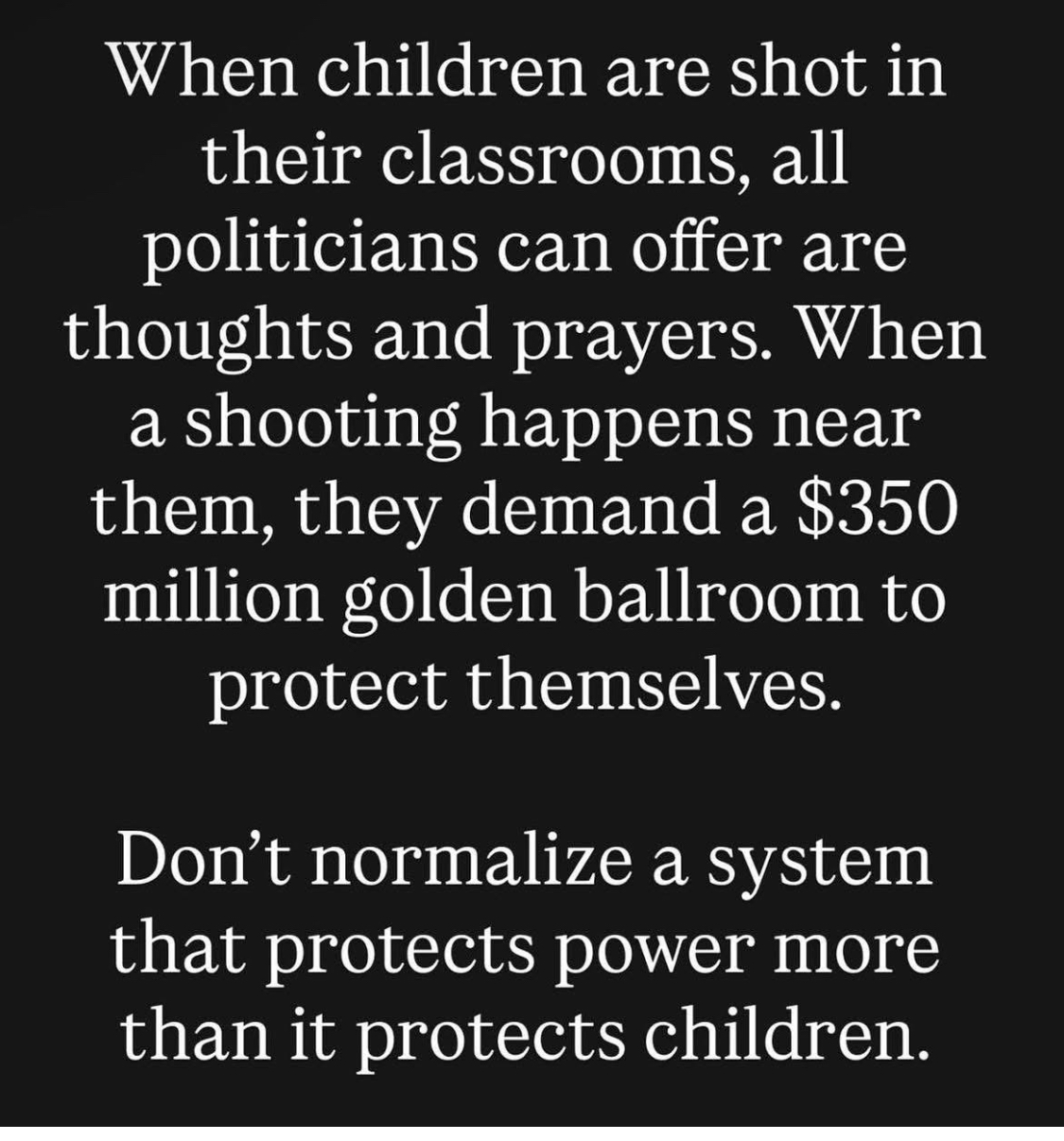 "Don't normalize a system that protects power more than it protects children."