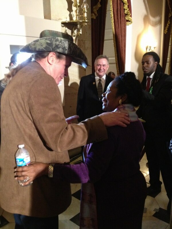 (310 posts)Nugent has taken up residence in Texas, here he is with Texas Rep. Sheila Jackson Lee at the SOTU address.