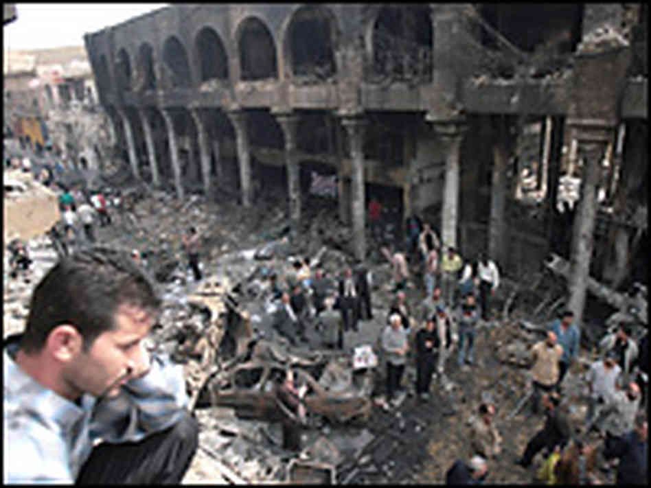 Iraqi intellectuals gather amid the ruins of Baghdad's al-Mutanabi street on March 8 (2007). Baghdad poets presented readings on the remains of the street, which was hit by a car bomb March 6, claiming the lives of more than 100 people. (Ali al-Saadi/AFP/Getty Images)