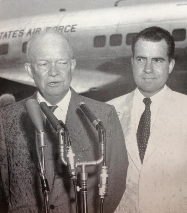 Here the result of Nixon's "no Chamberlain umbrellas" decree despite rain at Ike's return from seeing Khrushchev '55: pic.twitter.com/CrsYbmcWgV