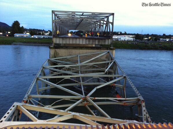 http://blogs.seattletimes.com/today/2013/05/bridge-collapses-on-interstate-5-over-skagit-riverTrooper Mark Francis wrote on Twitter that people and cars are in the water.
