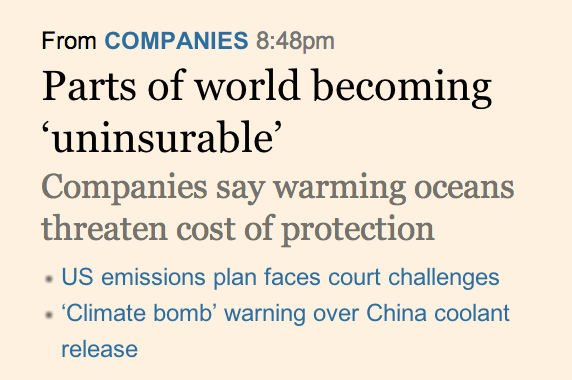 "Parts of the world becoming uninhabitable-Companies say warming oceans threaten cost of protection" (Original Post) kpete Jun 2013 OP