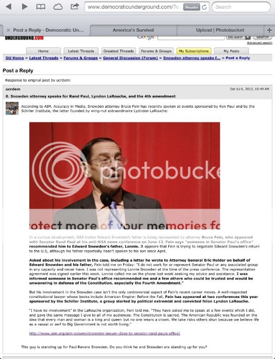 Related: Editorials & Other Articles, Issue Forums, Alliance Forums, Region ForumsSnowden attorney speaks for Rand Paul, Lyndon LaRouche, and the 4th amendment