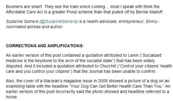 more crap http://blogs.wsj.com/experts/2013/10/28/suzanne-somers-the-affordable-care-act-is-a-socialist-ponzi-scheme/