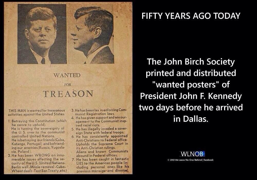 The John Birch Society put out a wanted poster for JFK just before he arrived in Dallas.