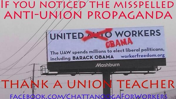 If I were to see that sign without the misspelling, I think I would yell, "You go, UAW!!! Damn right!"
