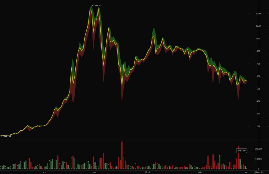 (106,212 posts)but of speculation. "Bitcoin is worth what the market says it is worth" - yes, well, did you expect DU to think that a free market-utopian idea like that is good? A real medium of exchange is somewhat stable compare with the goods and services it purchases.