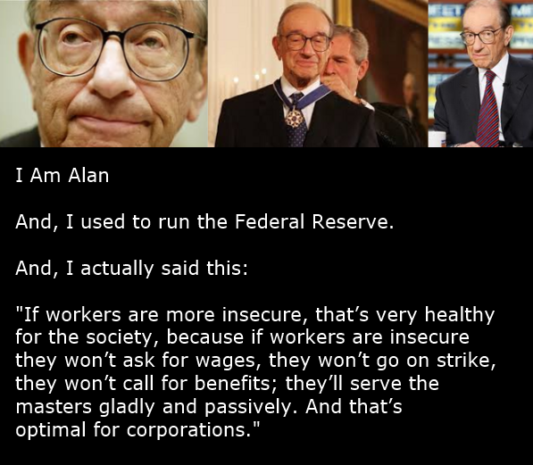 Related: Editorials & Other Articles, Issue Forums, Alliance Forums, Region ForumsGreenspan was very clear on why The Great Corporations want the 99% to live in desperation...