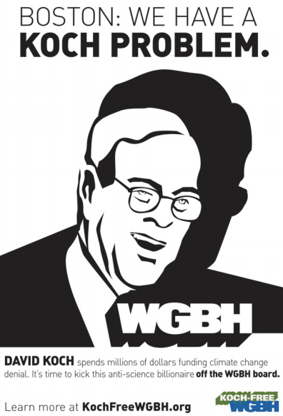 The campaigns target is David Koch, who serves on the board and the Science Visiting Council of Bostons WGBH. These are particularly powerful posts for the conservative financier one of the infamous Koch brothers because, like the Arnold-infiltrated WNET in New York, the Boston station produces many of the national PBS networks programming. In fact, according to its own website, WGBH is PBSs single largest producer of Web and TV content. That includes PBSs iconic science show, NOVA.
