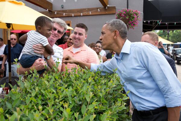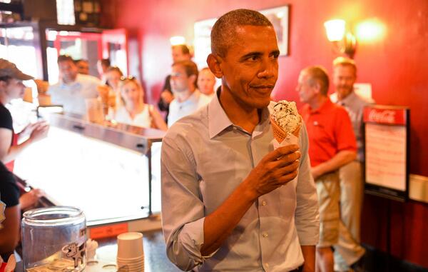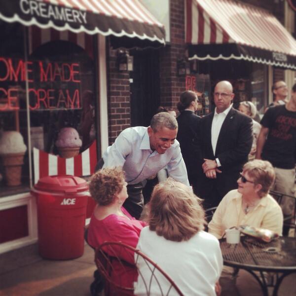 Potus visits with local ladies as he stops for ice cream on a lovely summer evening in St Paul. #DayInTheLife