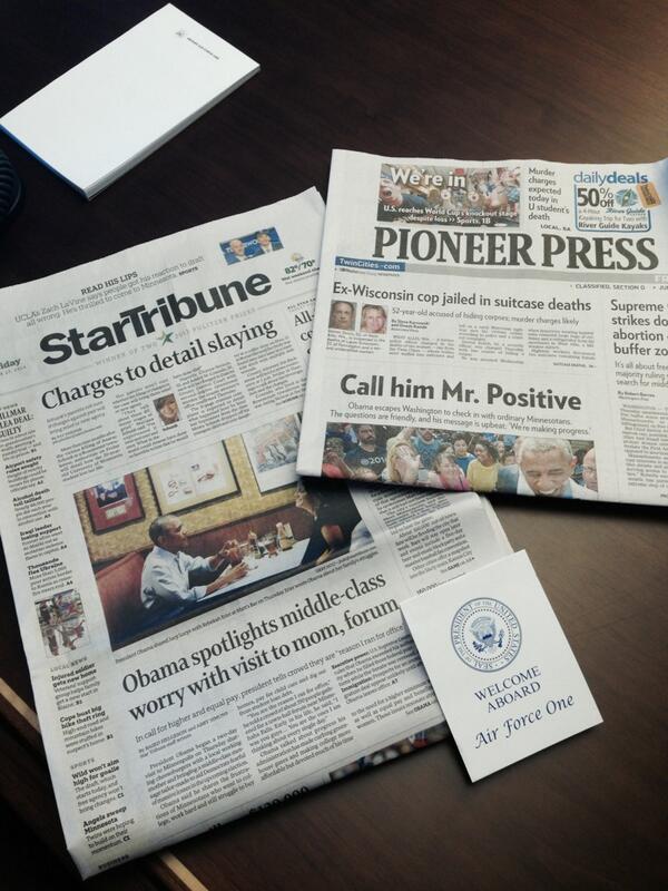 Obama walked over w/ fat cone, offered to buy. "Is that unethical? I'm trying to soften you up." #potusmn