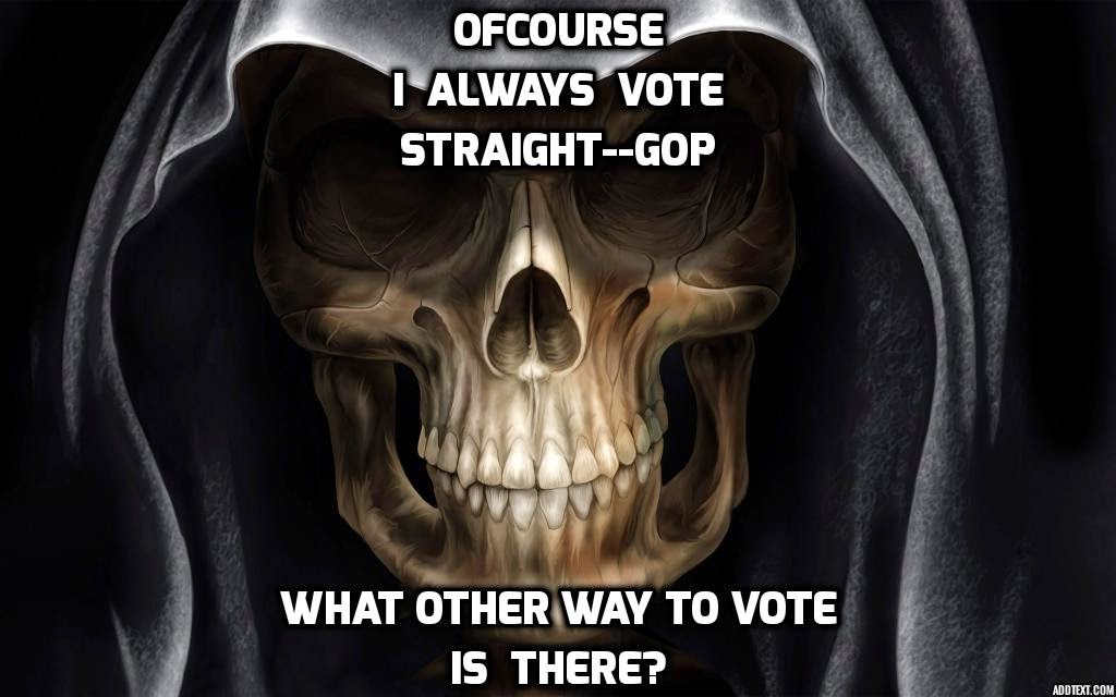Lots of stories about the GOP dying or the GOP on life support. Well, they sure still seem plenty alive and well enough to me. Unfortunately. I'll rest a little easier when they're fully GONE. OVER. DONE with.